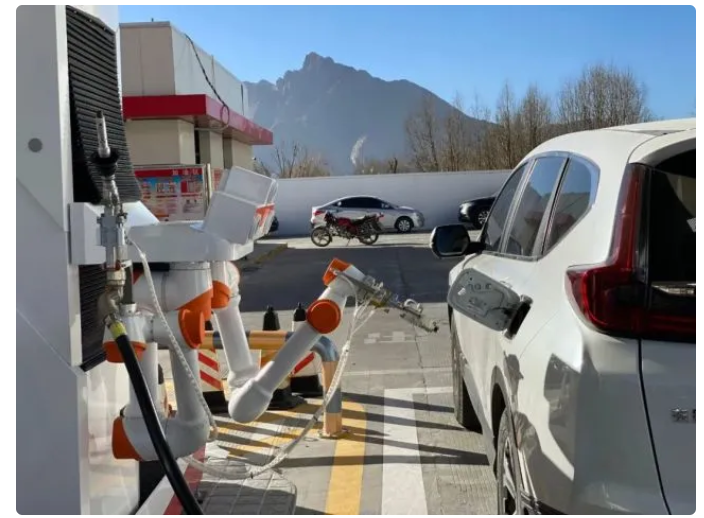 駕駛員通過中油好客e站APP下單后,智能加油機器人可以快速識別到油箱蓋,伸出機械臂,打開油箱蓋進行加油,短短幾分鐘就能完成操作。從進站、加油到出站,駕駛員全程無需下車,服務過程中無任何接觸。