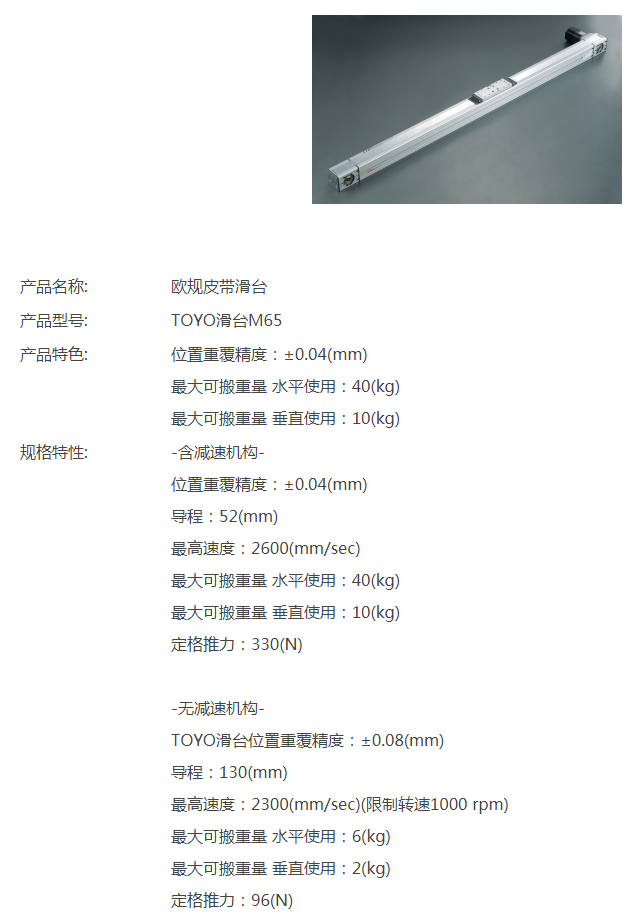 TOYO歐規(guī)皮帶滑臺(tái)M65