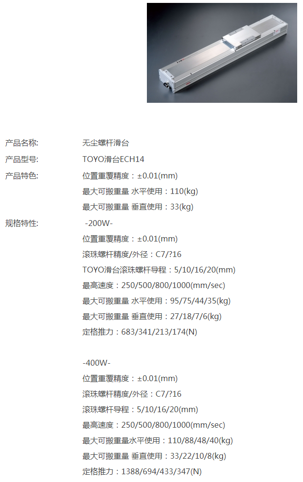 TOYO無塵螺桿滑臺ECH14