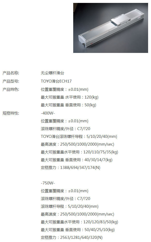 TOYO無(wú)塵螺桿滑臺(tái)ECH17