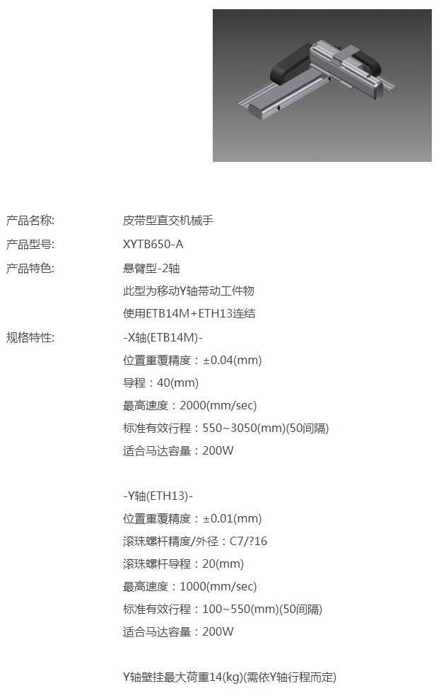 TOYO皮帶型直交機械手XYTB650-A