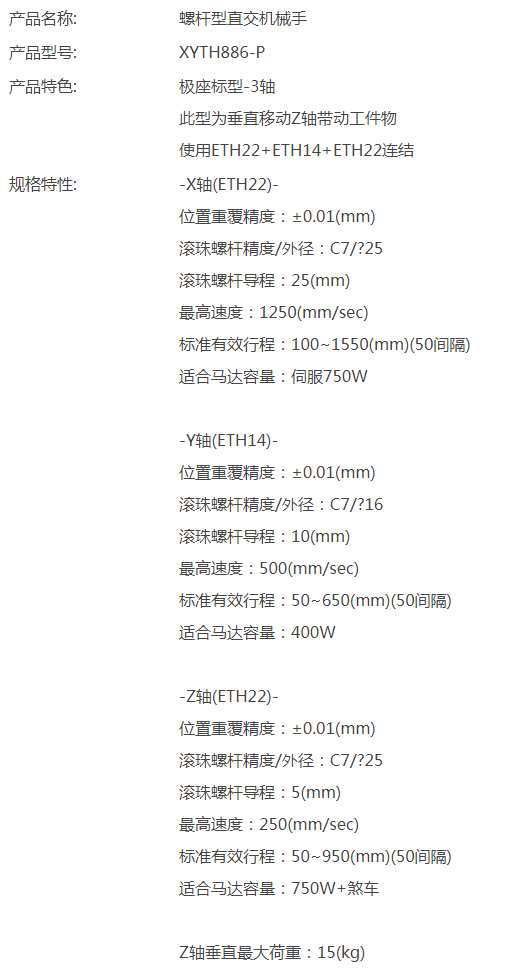 TOYO螺桿型直交機(jī)械手XYTH886-P