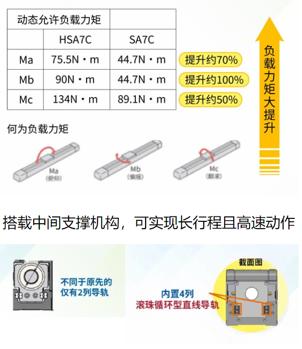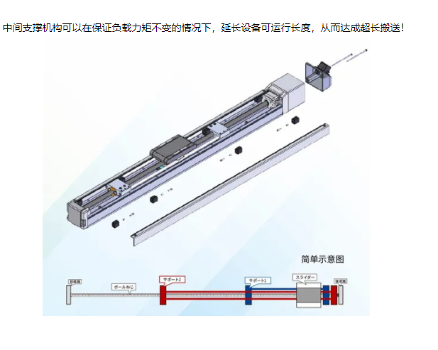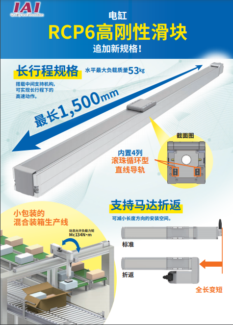 長行程規(guī)格 水平最大負載質量53㎏ 搭載中間支持機構,可實現長行程下的高速動作。 支持馬達折返