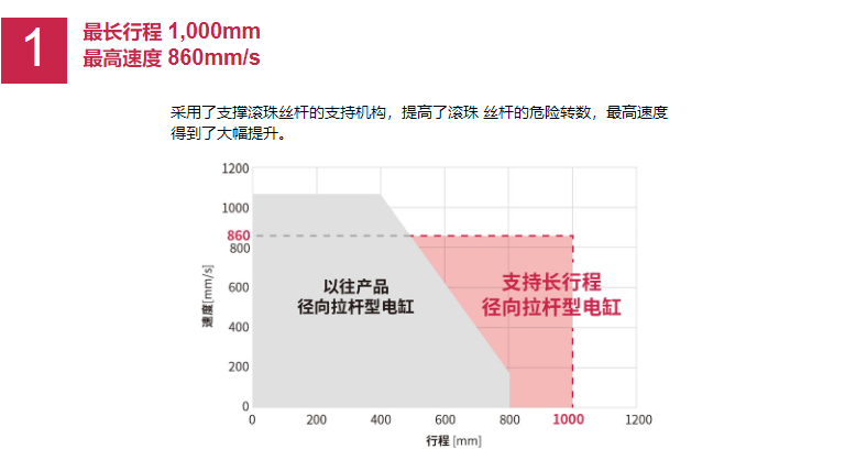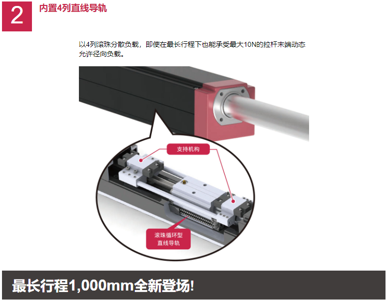 無需外置導軌的電缸 1.最長行程 1000mm 最高速度 860mm/s