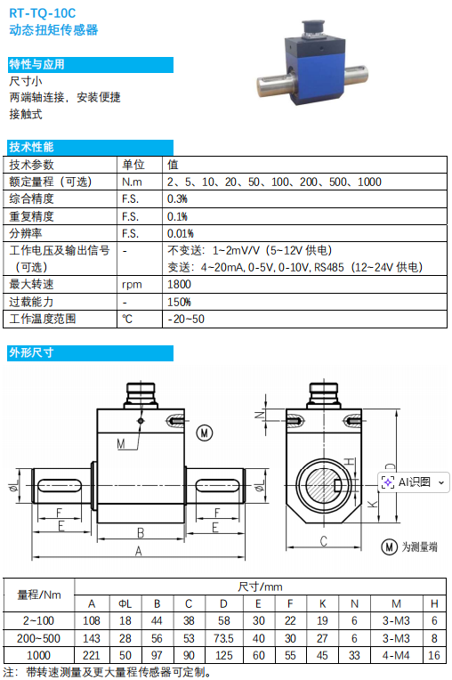RT-TQ-10C動(dòng)態(tài)扭矩傳感器